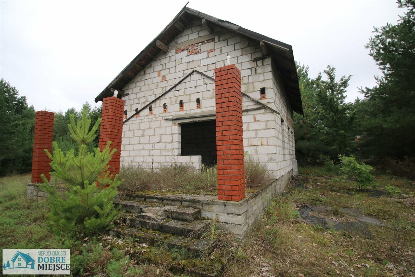 Na działce położony jest dom jednorodzinny w stanie surowym otwartym o pow. ok. 140m2 - można go po prostu ukończyć, lub zburzyć i zaplanować budynek wg własnego pomysłu.